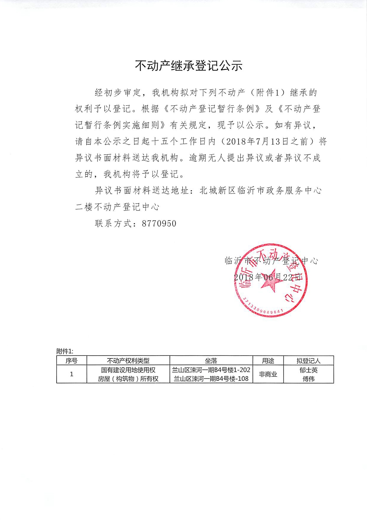 郁士英、傅伟继承公示