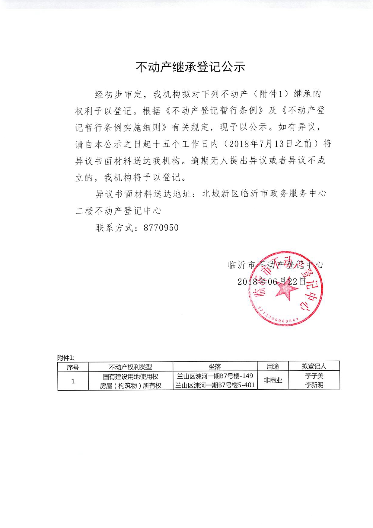 李子美、李新明继承公示