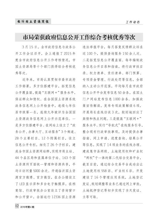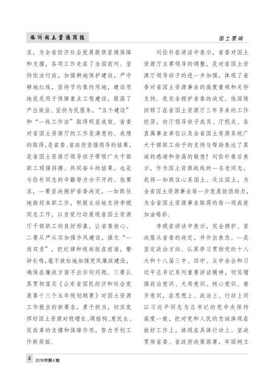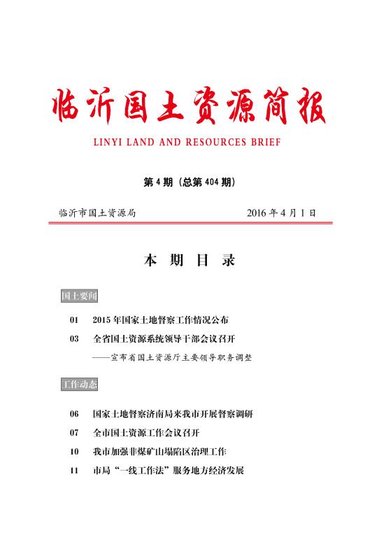 临沂国土资源简报2016年第4期(总第404期)